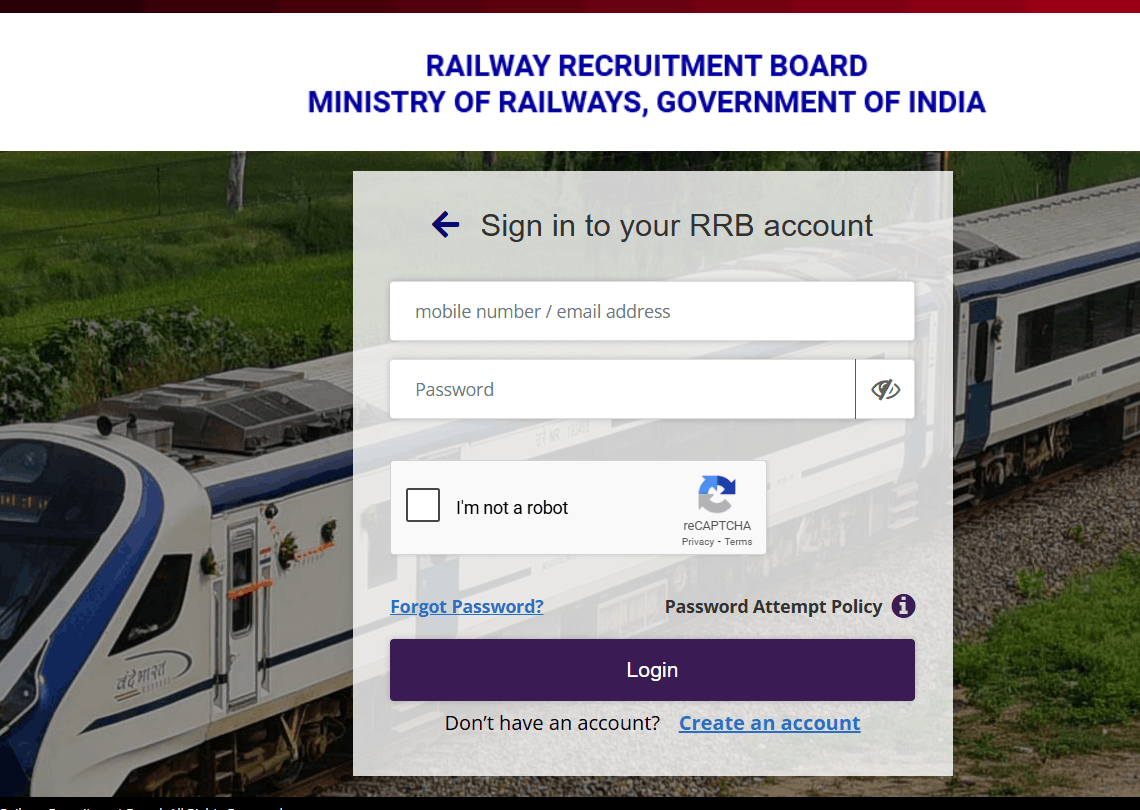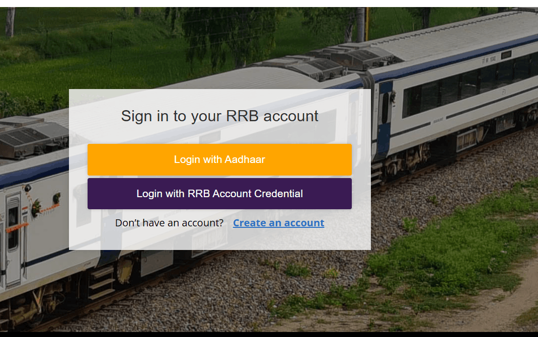 - यहाँ लॉगिन विथ आधार पर क्लिक करे, या लॉगिन विथ आरआरबी अकाउंट क्रेडेंशियल पर क्लिक करे।