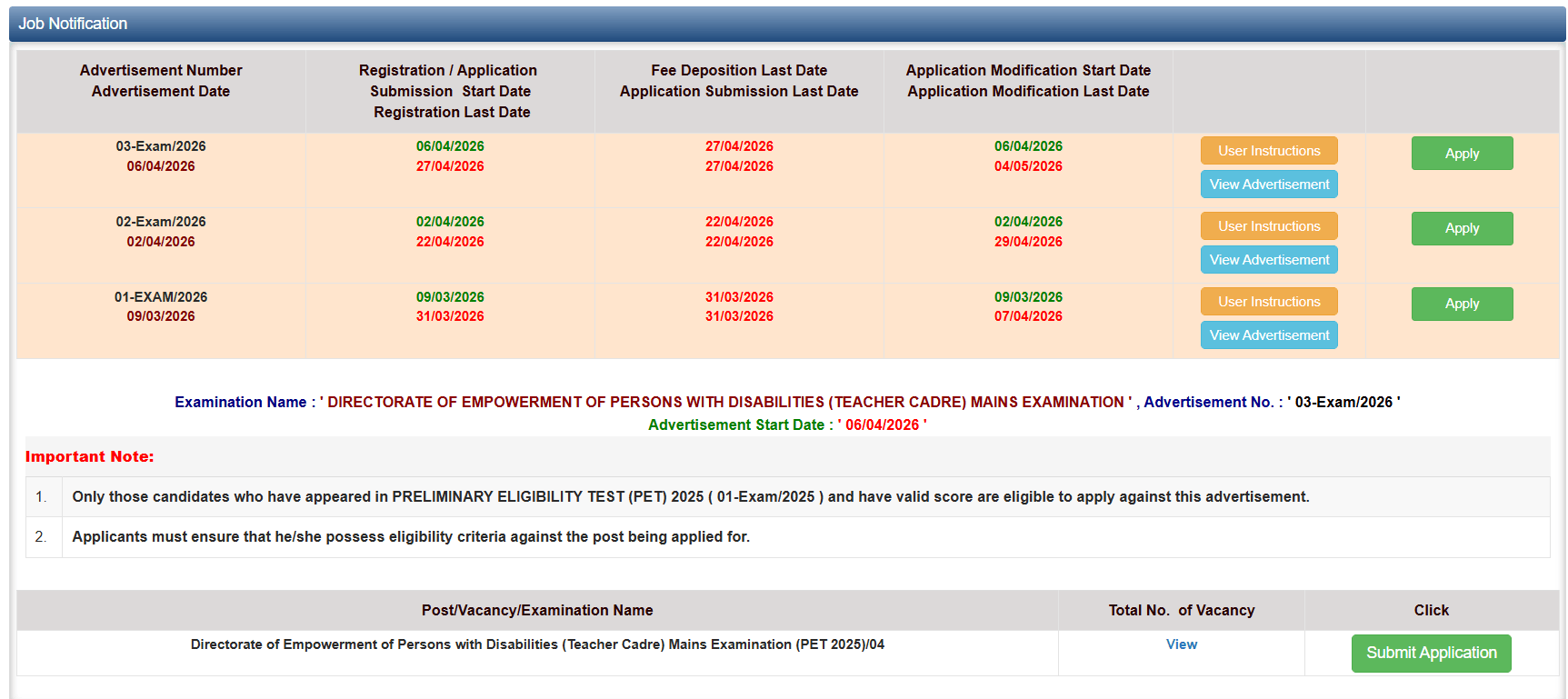 | 1. | सर्वप्रथम इस भर्ती के लिए वही कंडीडेट आवेदन कर सकते है। जिन्होंने 2025 में प्रारंभिक अहर्ता परीक्षा (PET) क्वालीफाई किया है। |